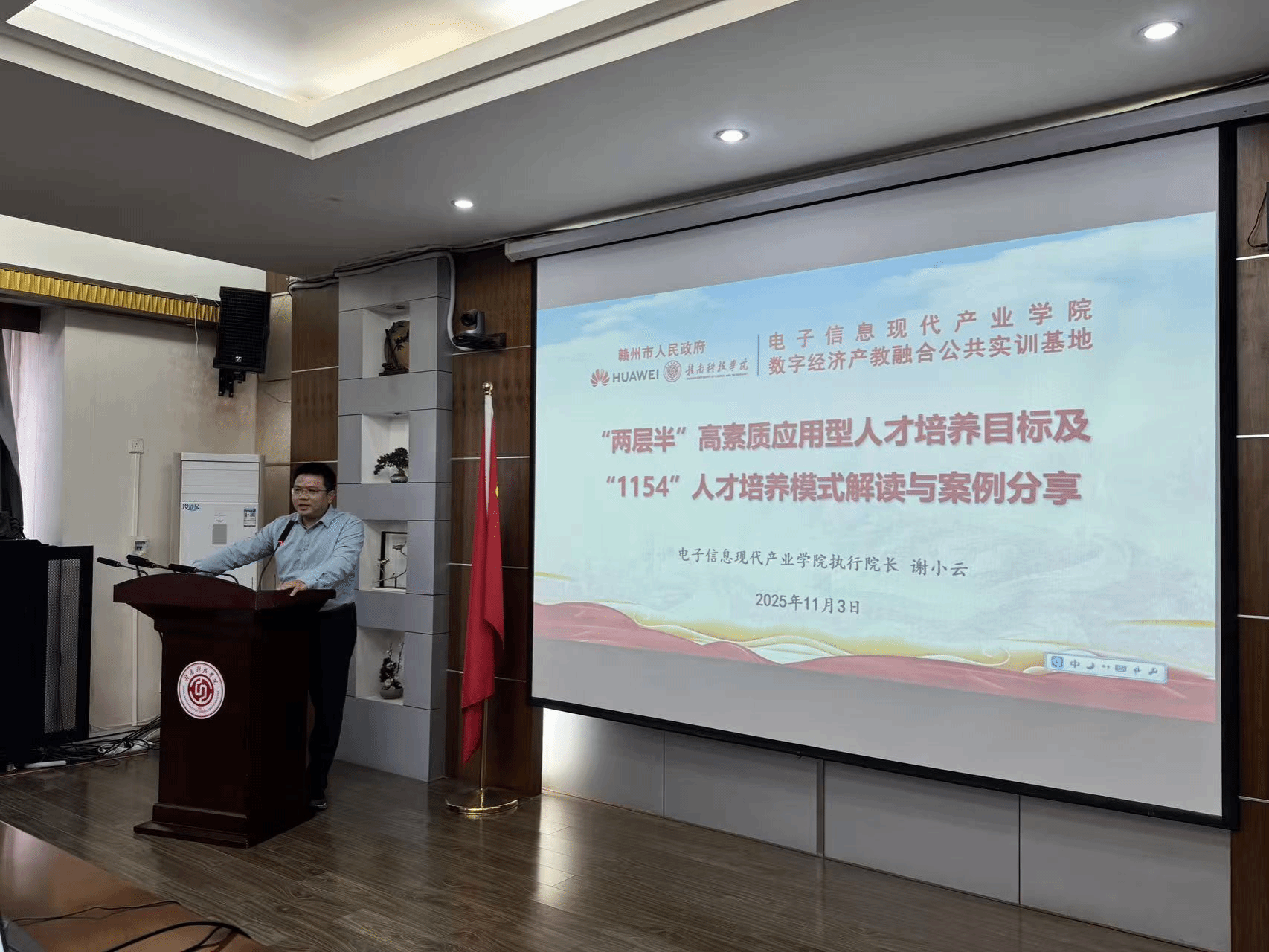 谢小云先详细介绍了“两层半”高素质应用型人才培养目标的核心理念,即培养位于“两层半”的“明德行、懂理论、精实践、善创新”的流程应用者。谢小云接着分析了“1154”人才培养模式,以构建质量为标准、制度为基础、资源为支撑、监督为保证的办学保障体系,为“两层半”高素质应用型人才培养保驾护航。谢小云还以电子信息产业学院的“天马项目”项目式教学